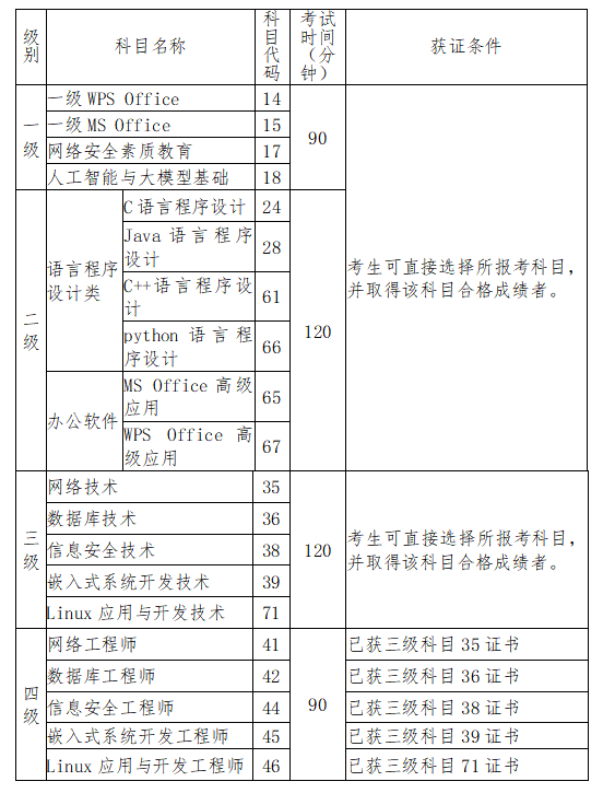 有关考试的具体信息,考生可以直接向考点和报名点咨询,或登录湖南省招生考试信息港“社考频道”网站了解。自2022年起,教育部教育考试院推出NCRE电子证书,所有符合取证条件的考生都将获得电子证书,不再发放纸质证书。考点联系人:教务处考试中心杜凯老师(0744-8323227)